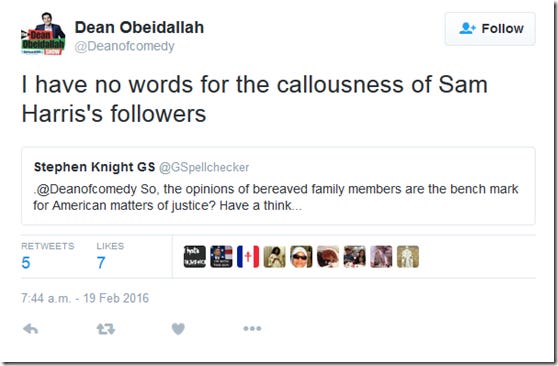For the crime of using simple logic, I’m described as ‘callous’ and Sam Harris gets the blame…