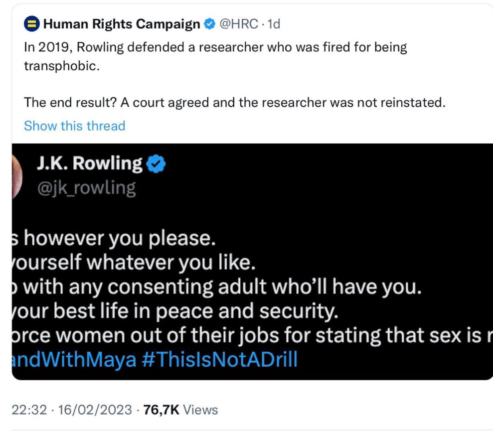 The Human Rights Campaign is lying about J.K Rowling's views on trans issues